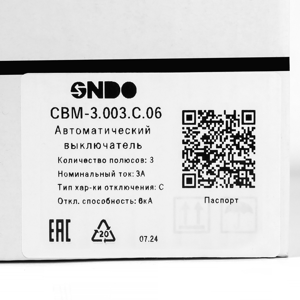 Авт. выключатель модульный, 3-полюсный, 3А, хар. C, 6кА, ~230/400В, монтаж на DIN-рейку