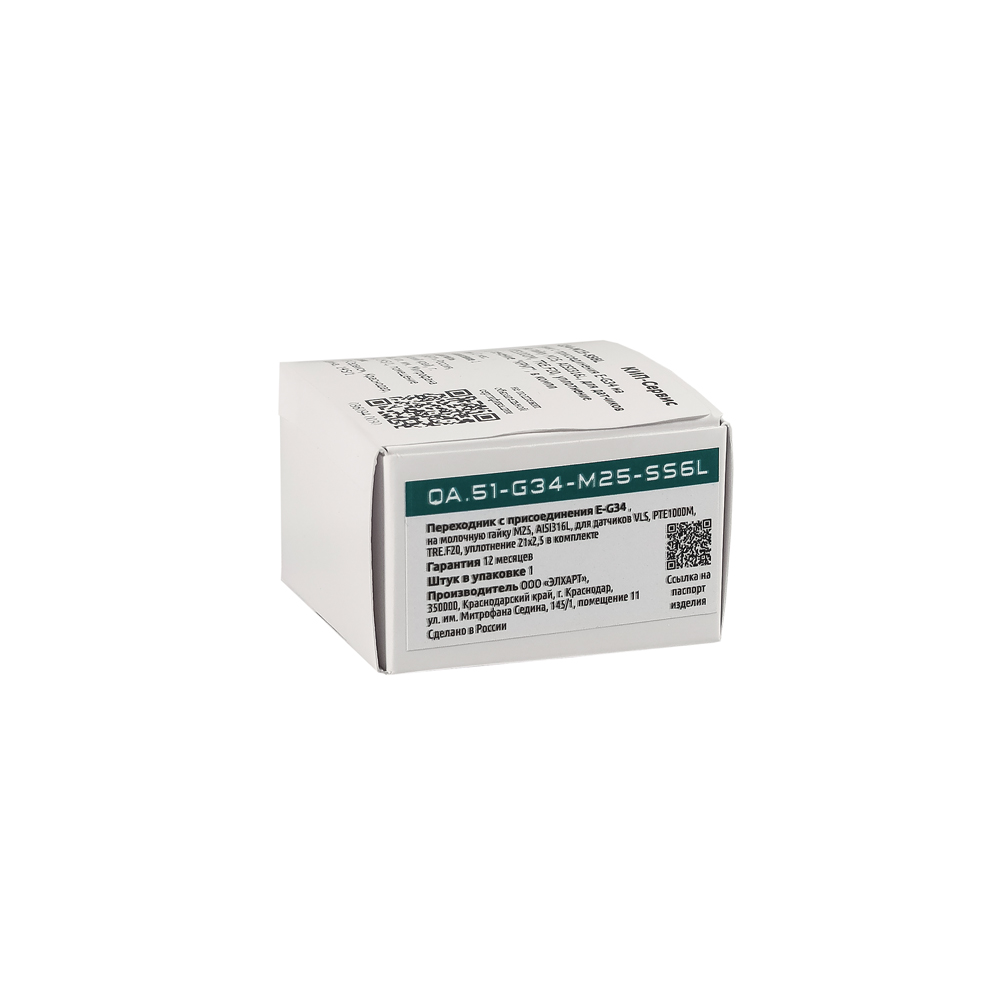 Переходник с присоединения E-G34 на молочную гайку М25, AISI316L, для датчиков VLS-CS, PTE1000M, TRE.F20, уплотнение 20,5х2,5, сечение "КРУГ", в комплекте