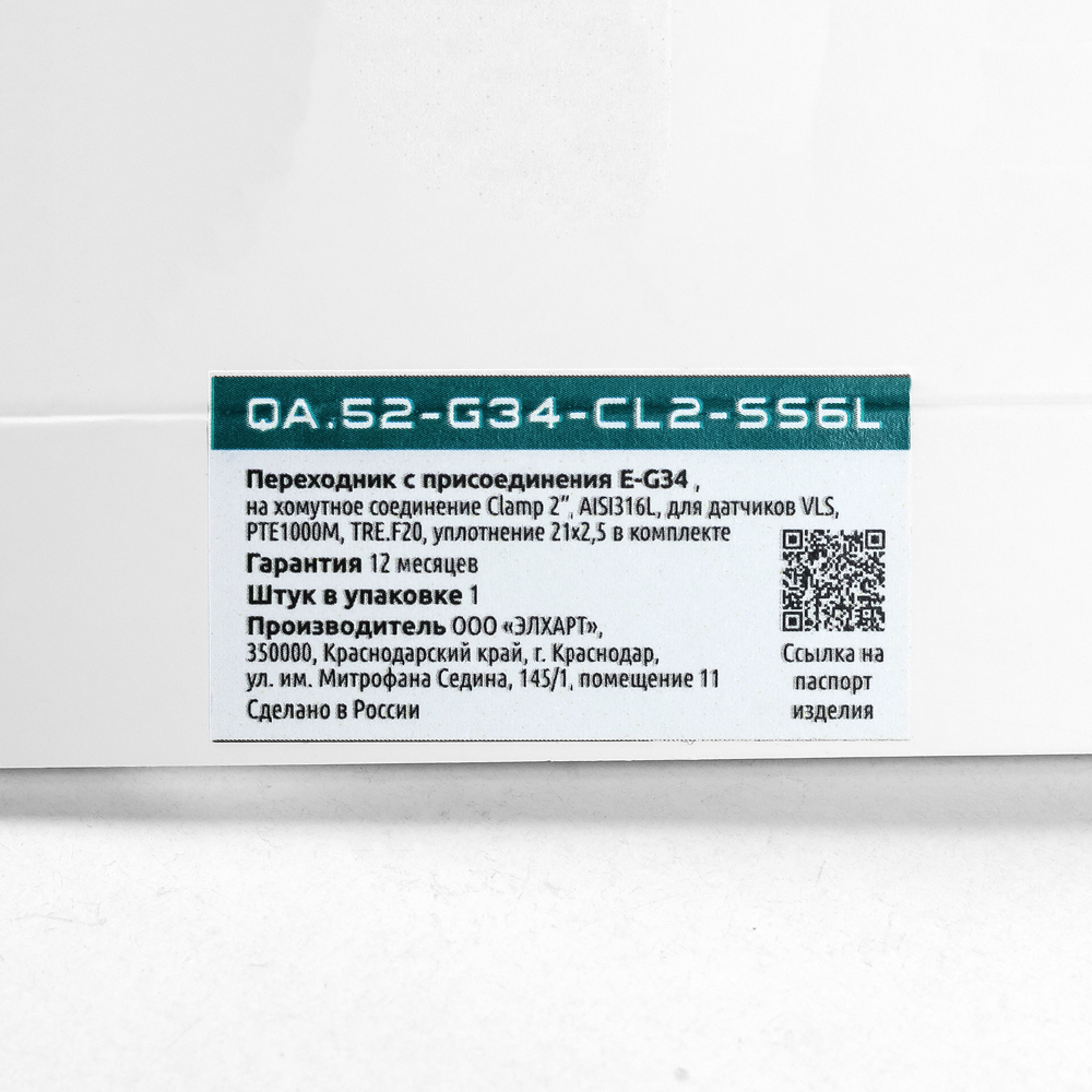 Переходник с присоединения E-G34 на хомутное соединение Clamp 2“, AISI316L, для датчиков VLS-CS, PTE1000M, TRE.F20, уплотнение 20,5х2,5, сечение "КРУГ", в комплекте - цена, купить в интернет-офисе КИП-СервисПереходник с присоединения E-G34 на хомутное соединение Clamp 2“, AISI316L, для датчиков VLS-CS, PTE1000M, TRE.F20, уплотнение 20,5х2,5, сечение "КРУГ", в комплектеELHART