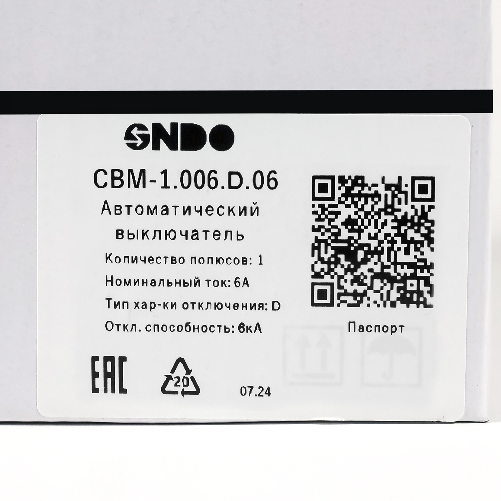Авт. выключатель модульный, 1-полюсный, 6А, хар. D, 6кА, ~230/400В, монтаж на DIN-рейку