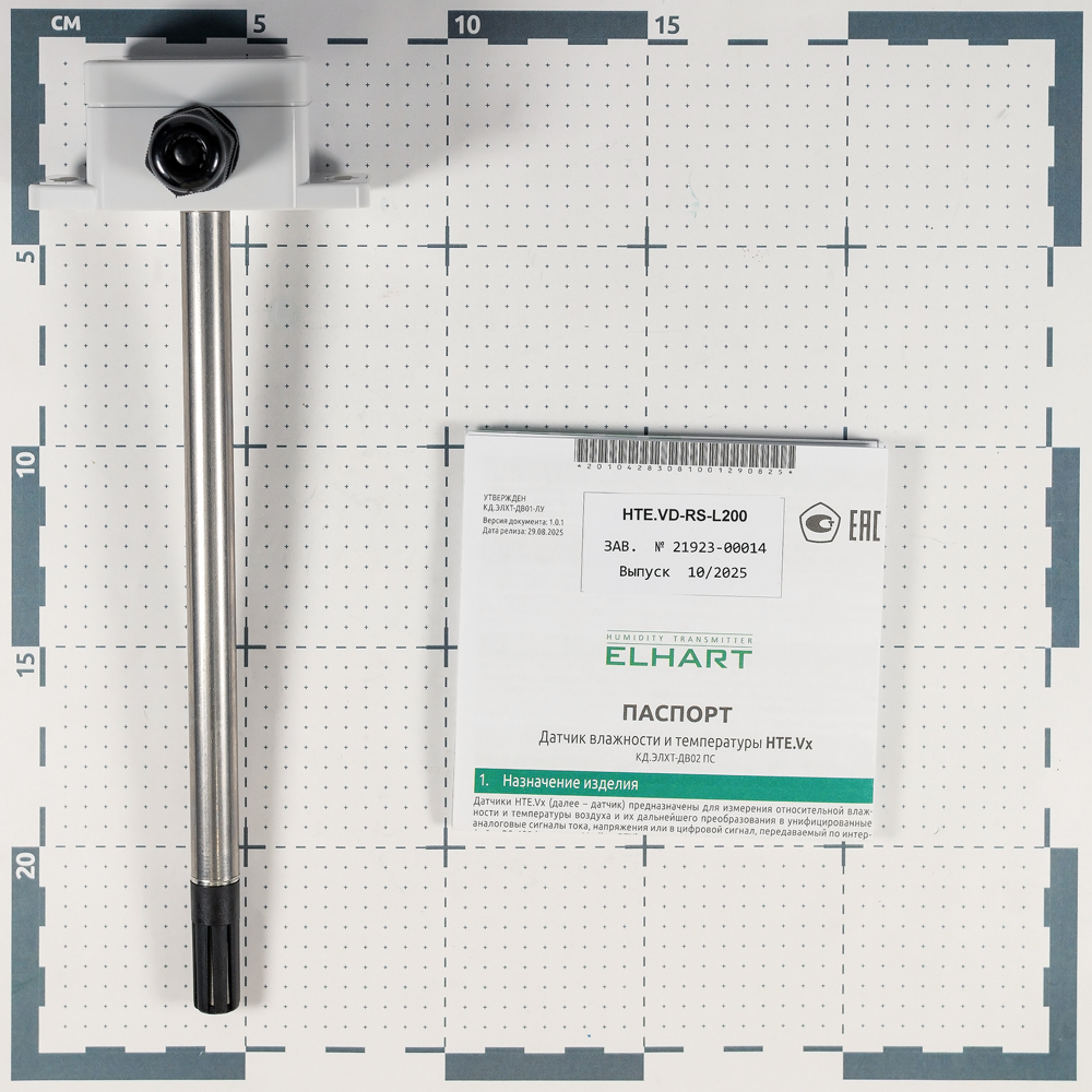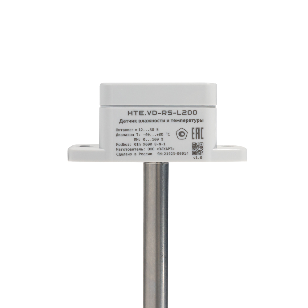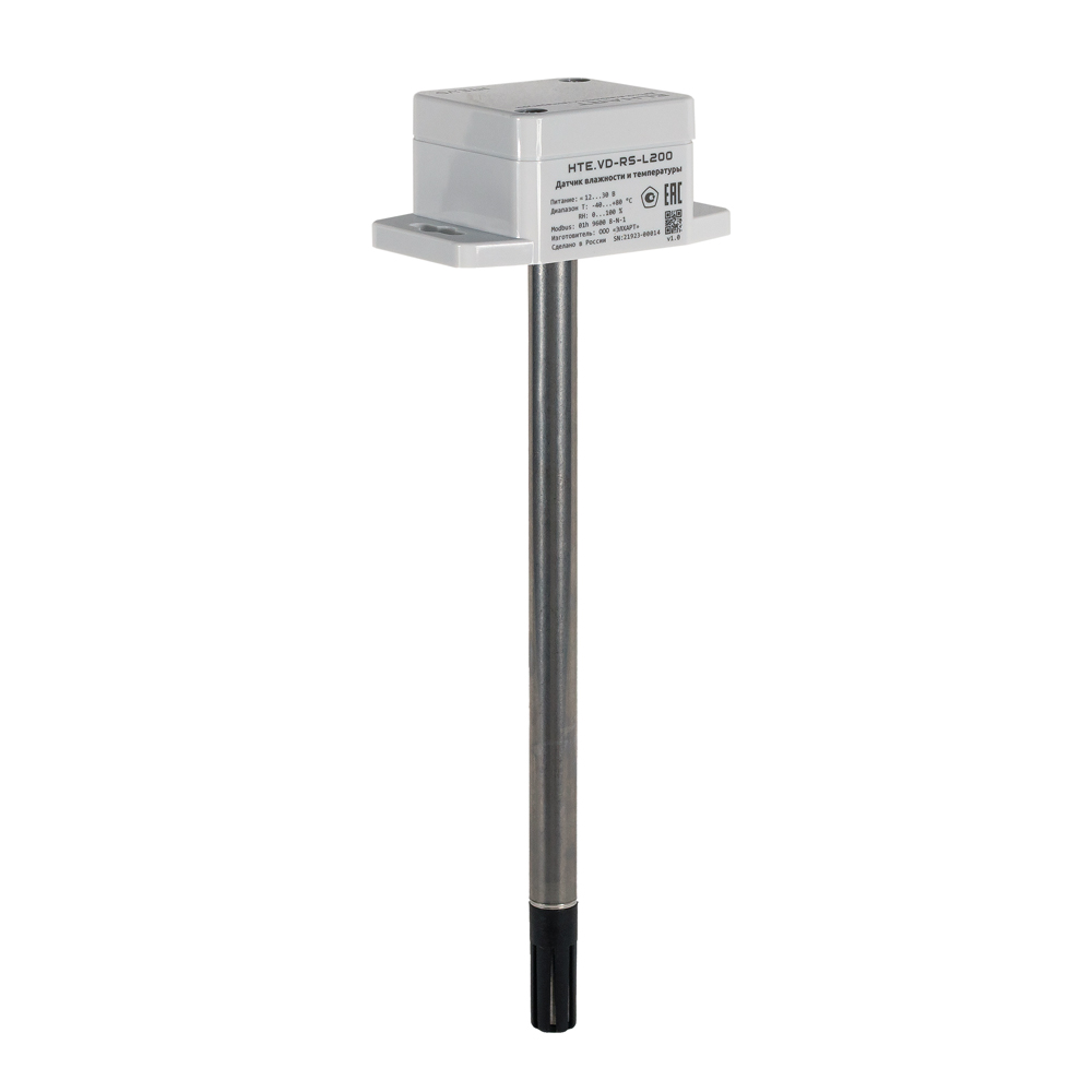 Датчик влажности и температуры, канальное исполнение с глубиной погружения до 200мм; Выход RS-485: влажн. 0...100%, темп. -40...+80 С; пит. =12…30 В, V1.0, ГРСИ